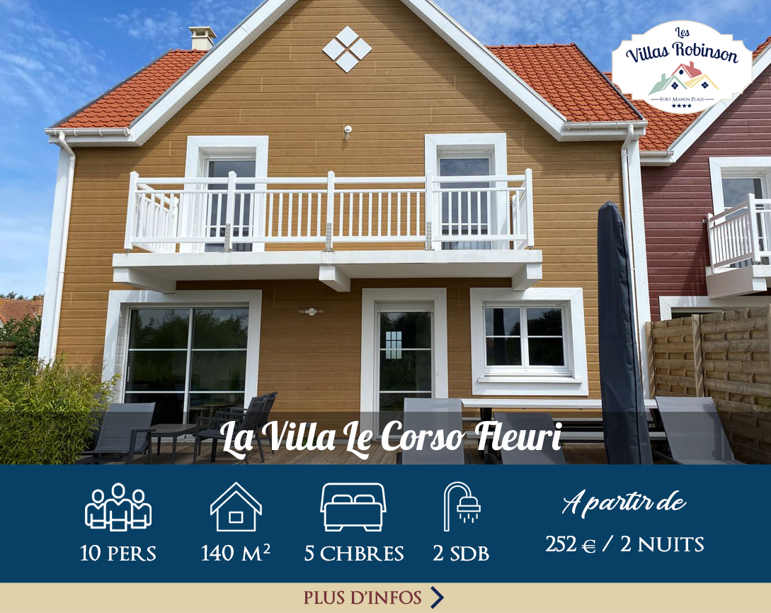 Les Villas Robinson, locations en maison de vacances classées meublées de tourisme 4 étoiles, sont idéales pour vous accueillir en week-end ou en vacances au cœur de Fort Mahon Plage, station balnéaire classée située entre la Baie d’Authie, le Marquenterre et la Baie de Somme.